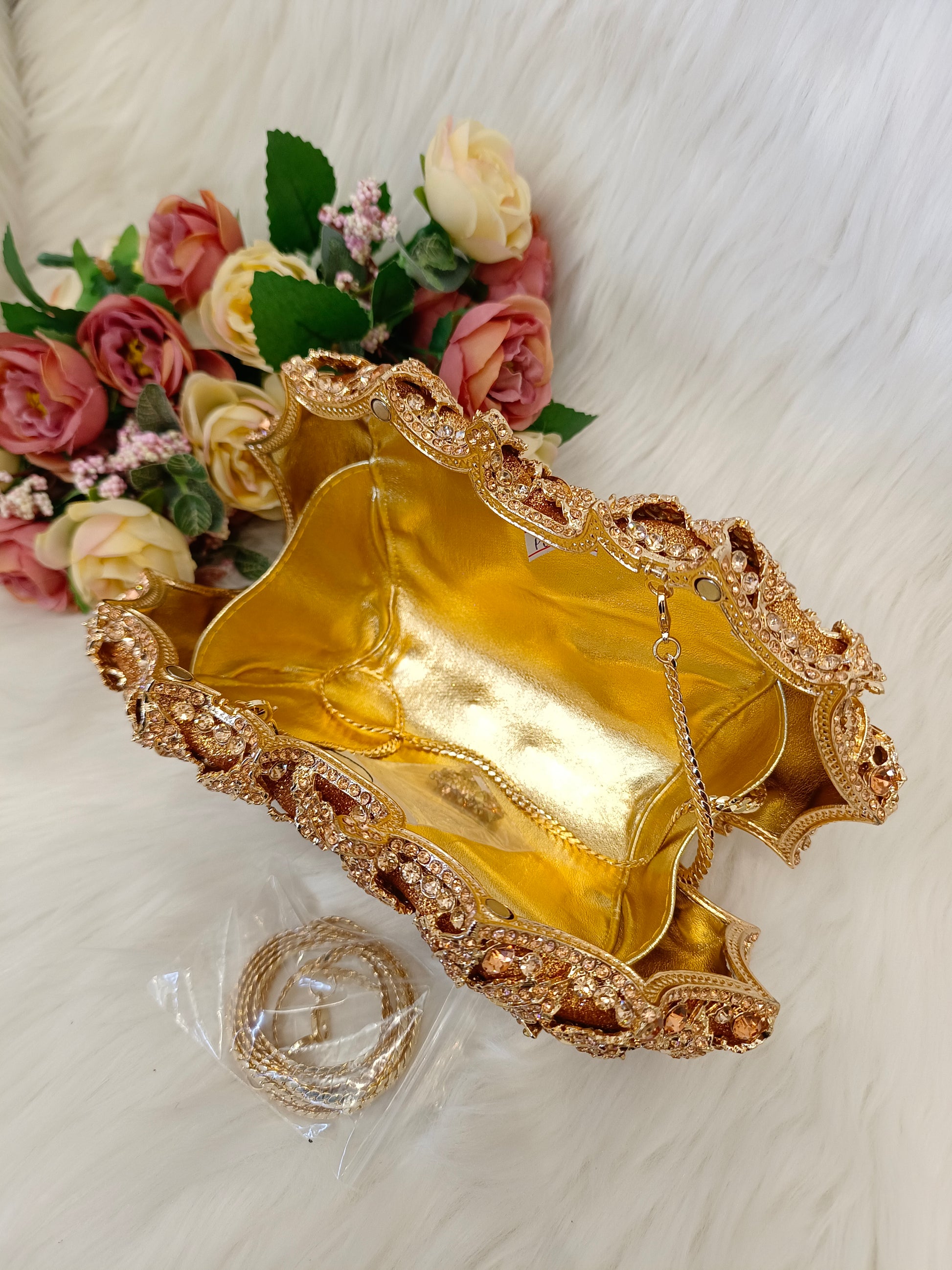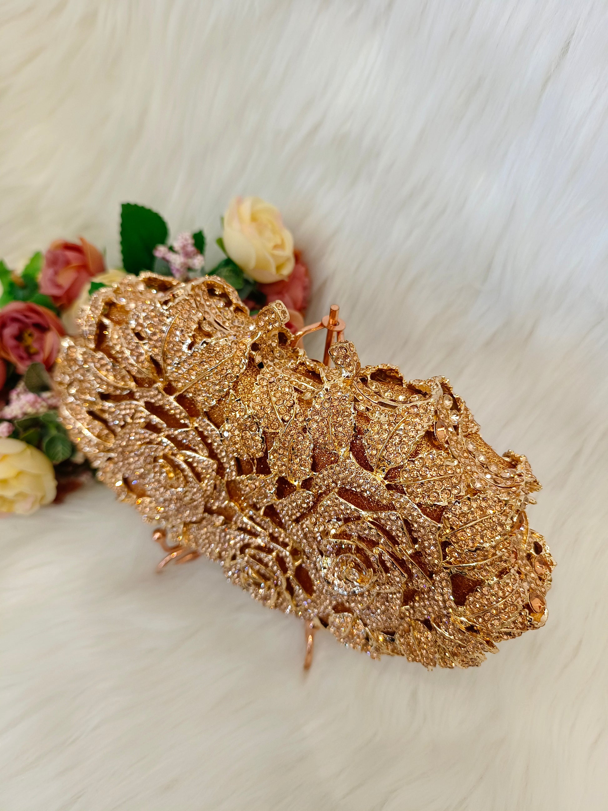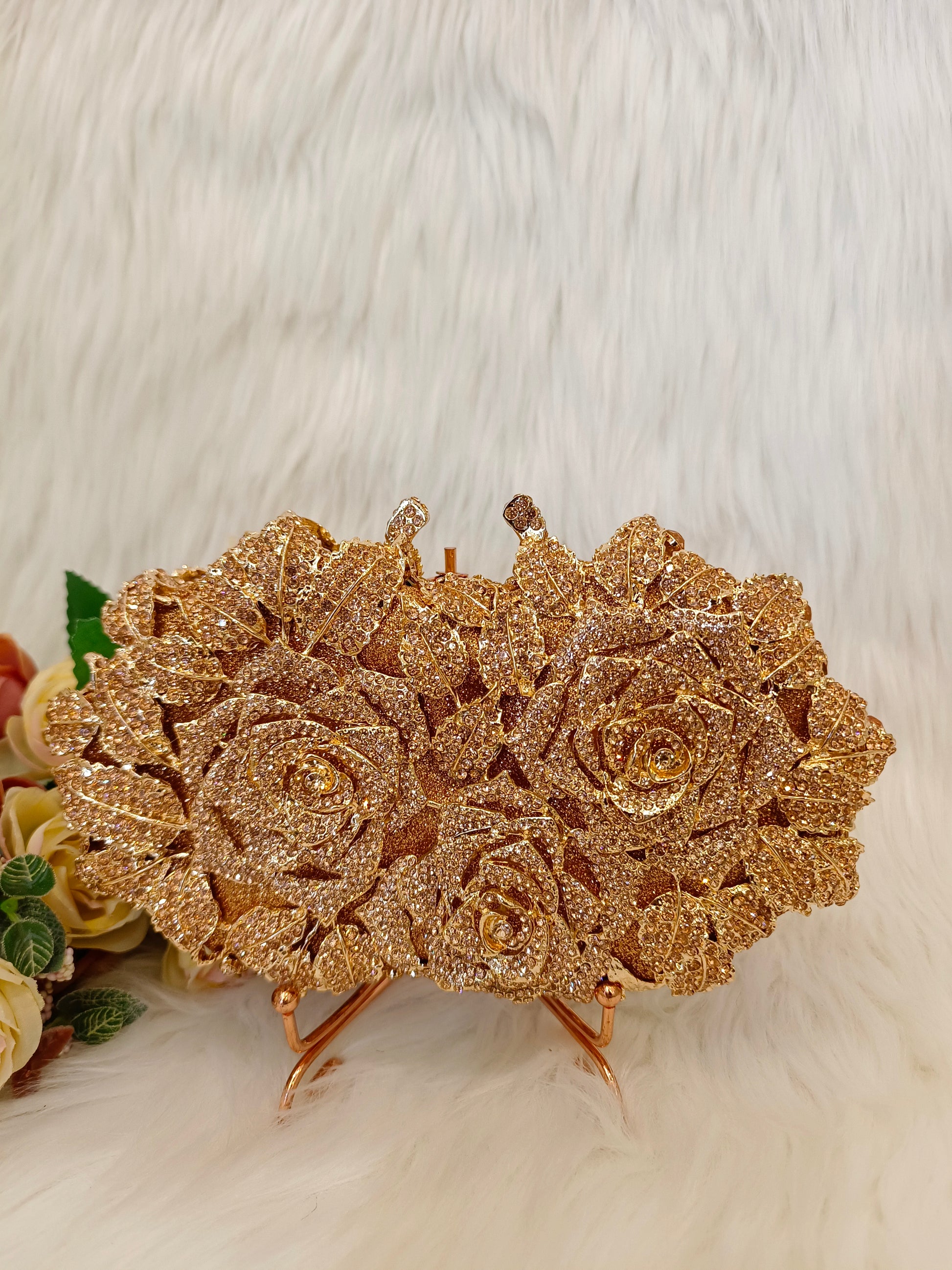 Designer Floral Rhinestone studded evening clutch.